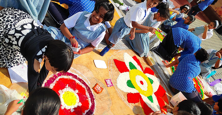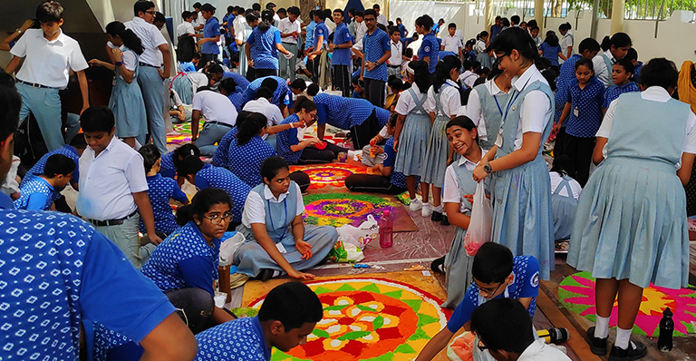 Muscat: Students of Indian School Al Ghubra enthusiastically participated in the Pookkalam / Rangoli Competition that was conducted on Sunday, the 13th of October in the school premises.