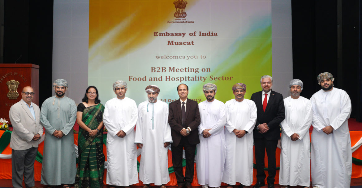 Muscat: Embassy of India, Muscat, organized an India-Oman Business-to-Business (B2B) Meeting on Food Sector on Monday, 14 October 2019 at its premises. The B2B session helped in facilitating interaction and tie-ups between representatives of Indian companies visiting Oman to participate in ‘Food and Hospitality Oman 2019’, with their Omani counterparts. Dr Salim Suleym Saleh Al Junaiby, Vice-Chairman of Oman Chamber of Commerce was the Chief Guest on this occasion.