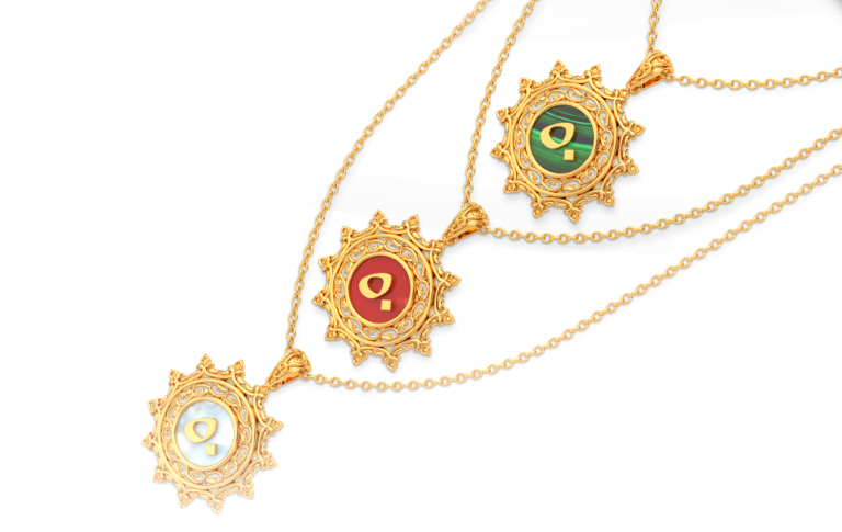 The 50th National Day sale also includes a set of unique designs that pay tribute to this important occasion. The 50th National Day set includes a yellow gold necklace with green malachite, mother of pearl or red onyx inlay, with the number 50 beautifully engraved in its centre. An unforgettable memento of this special day, which marks the beginning of a new era of the Omani Renaissance, established by the late Sultan Qaboos bin Said bin Taimur over the past five decades, and continued today under the leadership of His Majesty Sultan Haitham bin Tarik – May Allah protect him.
