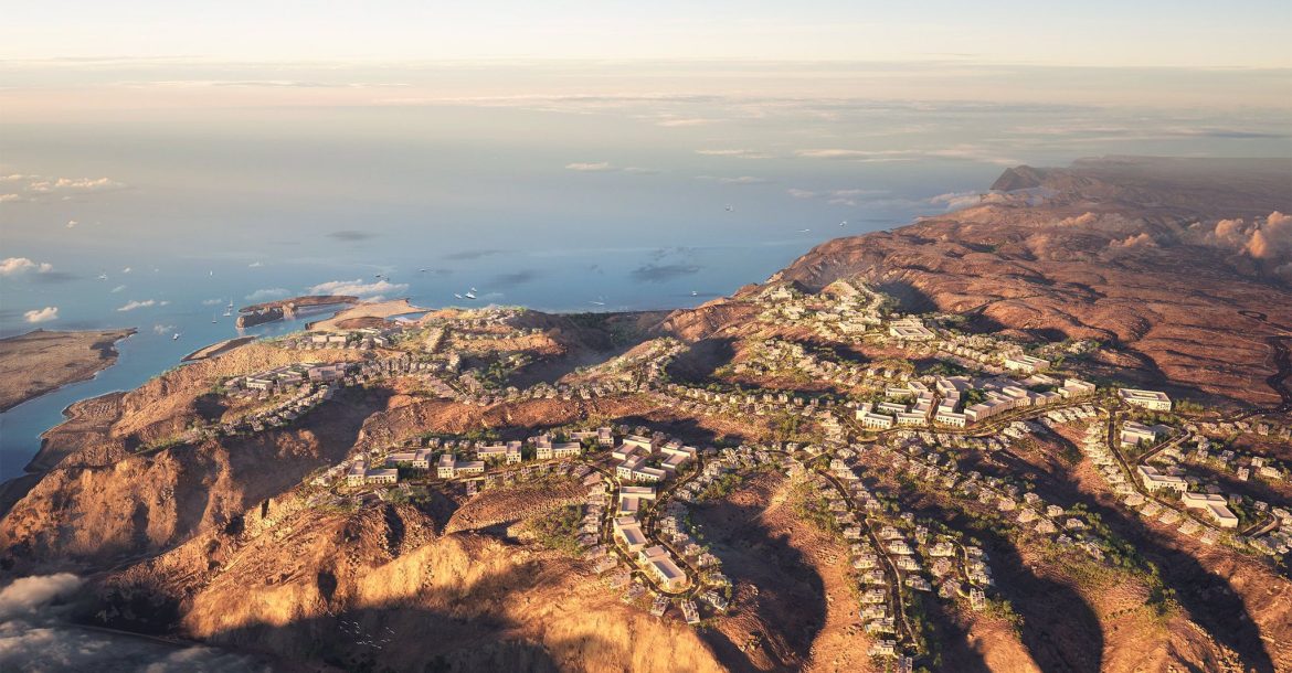 The project, which will be built at an altitude of 100 meters above the shores of the Sea of Oman, will consist of 3,500 housing units, including medium-sized villas, townhouses and apartments. The project will also include two hotels with a total of 450 hotel rooms, in addition to a plaza for cafes and restaurants, and a park that includes luxury stores and other public facilities.