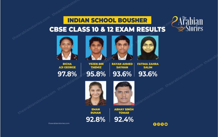 The other subject toppers from Grade 10 are Angelina Rose Shijo in English(97/100), Meenakshi Menon in Hindi (94/100), Yezen Bin Themiz in Arabic (99/100), Rayan Ahamed Sayhan in Mathematics (99/100), Muhammed Razeen in Social Science (97/100), and Supriya Sahu, Hashiny Priya and Tulika Agrawal in French (96/100).