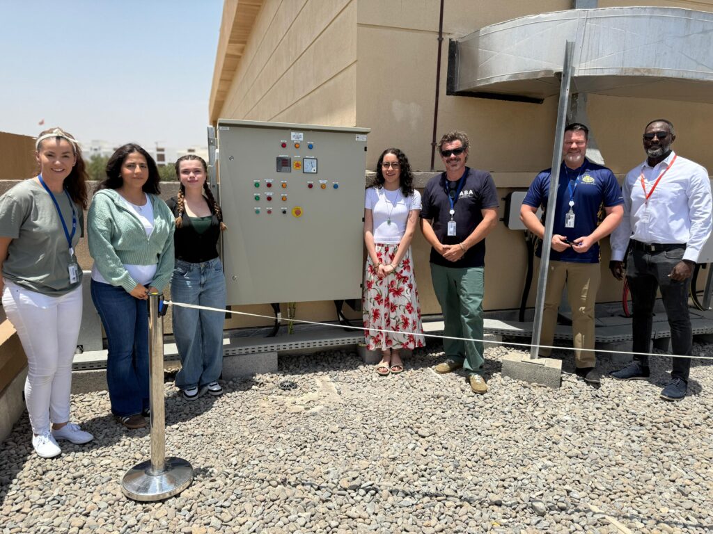 The project was delivered in partnership with Energentus Oman and officially launched during ABA’s unique celebration of ‘World Earth Day,’ marking Earth Day and World Environment Day. The project was launched by Mr Craig Williamson, Head of School, and Hamza Kambal, Operations Manager at Energentus, together with ABA’s Sustainability Coordinator Ruairidh MacKenzie, faculty coordinator Ciara Gillespie, and current EcoSoc student leaders Angela, Nara, and Alex.