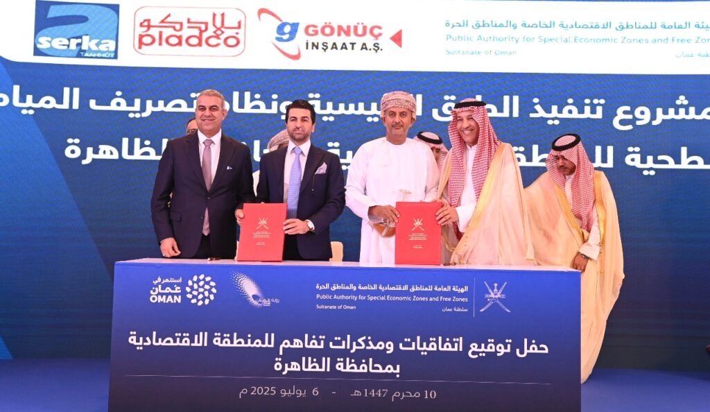 A key agreement was a contract to construct main roads and a surface water drainage system in the Al Dhahirah Economic Zone at a cost of RO 22.3 million, to be implemented over 24 months by an Omani-Saudi consortium. The project includes 17 km of dual and single-lane roads, solar-powered lighting infrastructure, 6.3 km valley diversion channel to mitigate flood risks, Rainwater drainage systems and box culverts and environmental protection and excavation works.