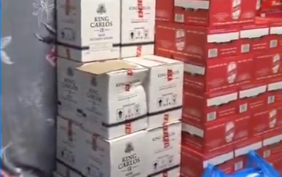 Video footage released by the ROP, show vast quantities of alcohol meticulously stacked and hidden within the residential property.