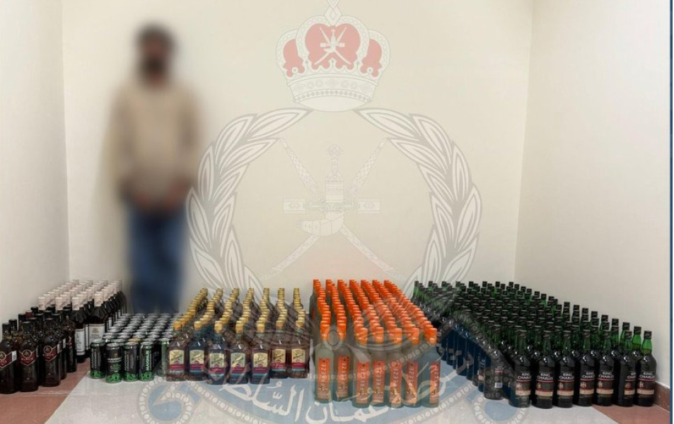 MUSCAT – The ROP stated that its Al Wusta Governorate Police Command, in cooperation with the Special Taskforce Police Unit in Haima, apprehended the individual for possession of alcoholic beverages that were intended for illegal trade.
