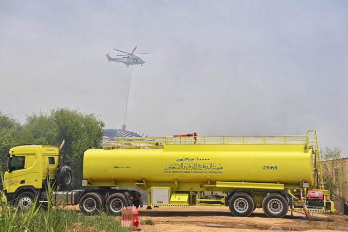 MUSCAT – According to a statement from the CDAA, the fire outbreak resulted in the flames spreading to nearby vegetation. With support from police aviation, the firefighting teams successfully controlled and extinguished the fire, ensuring that no injuries were reported.