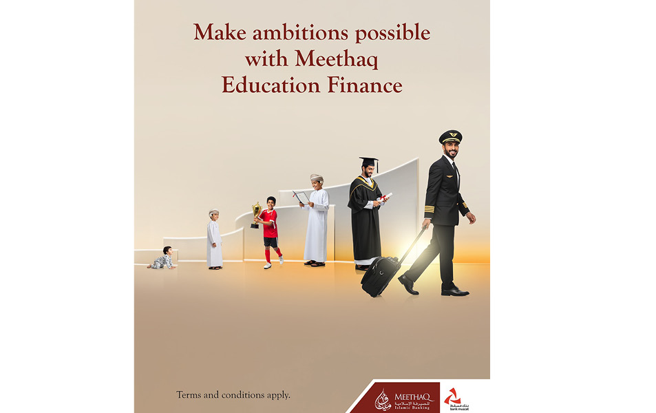 MUSCAT – Meethaq Islamic Banking from Bank Muscat provides flexible financing solutions tailored to meet the diverse needs of students and families. Education Finance remains one of the most sought-after options for those aspiring to pursue studies while benefiting from a fully Sharia’a-compliant product. Meethaq Education Finance includes a wide range of benefits such as up to 100% coverage of tuition fees, convenient repayment plans, competitive rates, and services from leading education providers across the Sultanate. Customers can access financing of up to RO 16,000 with a tenor of up to 10 years.