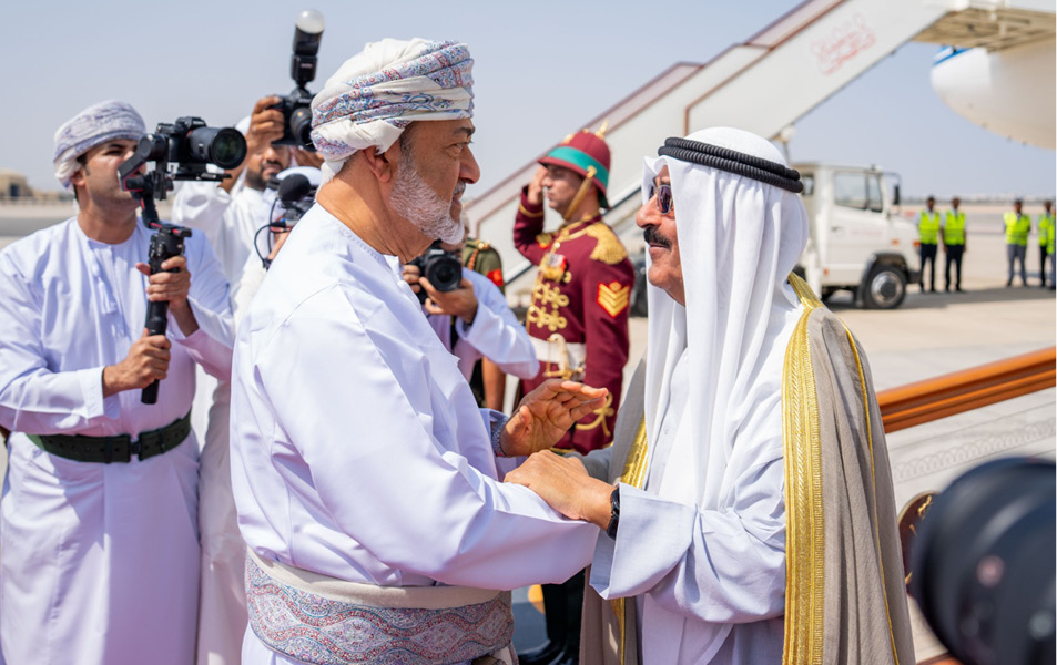 His Majesty Sultan Haitham bin Tarik led the welcoming ceremony at the Royal Airport, receiving the Kuwaiti Emir with full honours in the presence of senior Omani officials and members of the Royal Court.