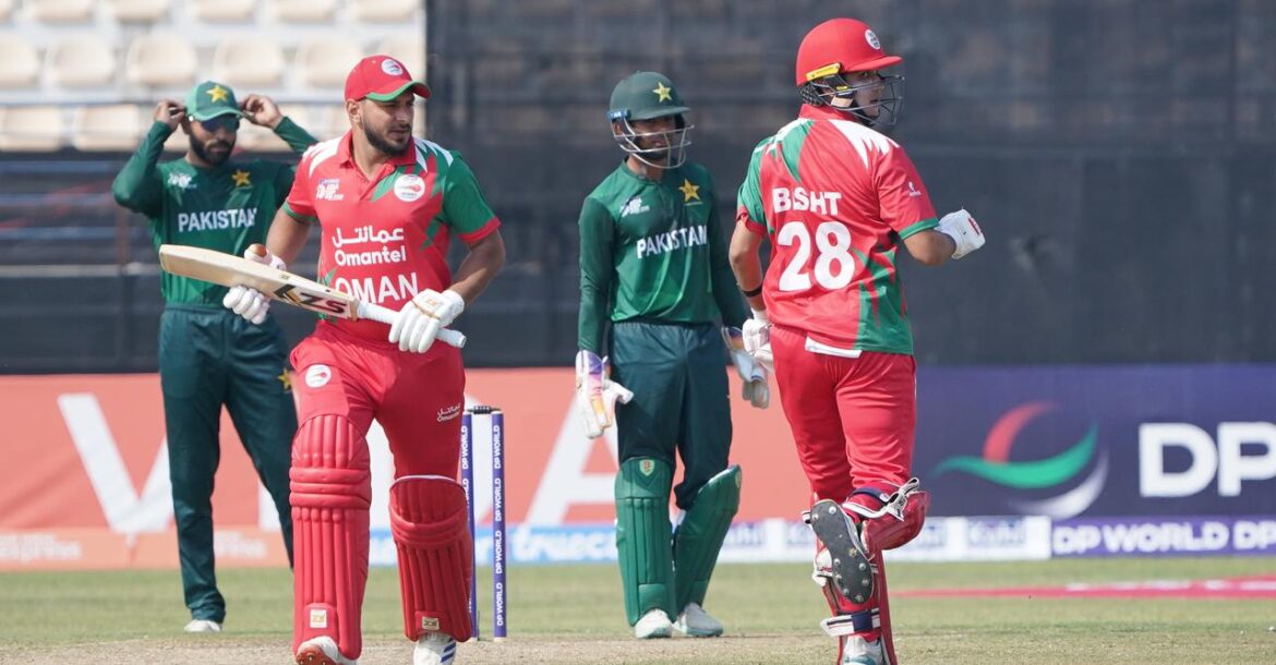 Oman’s bowlers shared the wickets, with Raza returning the most economical figures of 1 for 27.