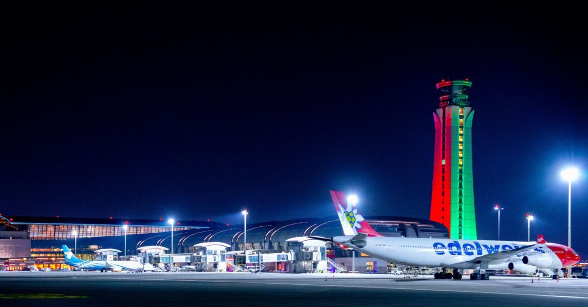 In a statement, Oman Airports said the illumination embodies “pride and belonging to the homeland,” adding that the tower stands “tall in the sky as a shining symbol of our loyalty and devotion to the Sultanate of Oman.”