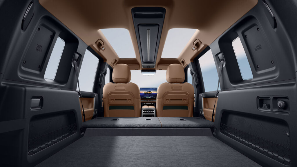 Space remains a defining advantage. Built on a new energy platform, the V27 converts its rugged proportions into tangible interior benefits. The second row offers up to 950 mm of legroom, while the vehicle’s class-leading cabin height allows even a 1.3-meter-tall child to stand upright inside, a feature particularly valued by family-oriented buyers. With a 69.9% space utilization rate, large window surfaces and up to 50 storage compartments, the cabin remains bright, open and highly practical.