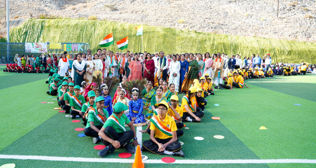MUSCAT : The Indian School Wadi Kabir [Cambridge] in Muscat formally observed the 77th Republic Day of India in a ceremonial event held on Monday, January 26, 2026. The proceedings, conducted at the ISWK Primary School Grounds, were anchored in the resonant theme of “Aatmanirbhar Bharat & Vande Mataram,” championing the dual ideals of national self-reliance and patriotic devotion.