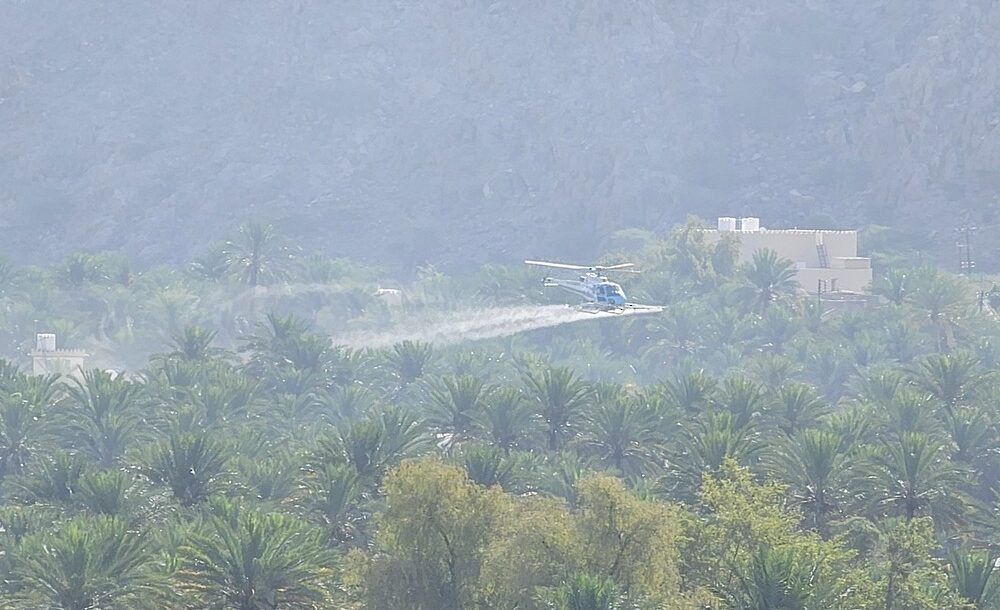 MUSCAT – Implemented by the Directorate General of Agriculture, Fisheries and Water Resources using helicopters, the three-day campaign comes within the framework of ongoing efforts to protect palm trees and limit the spread of this agricultural pest.