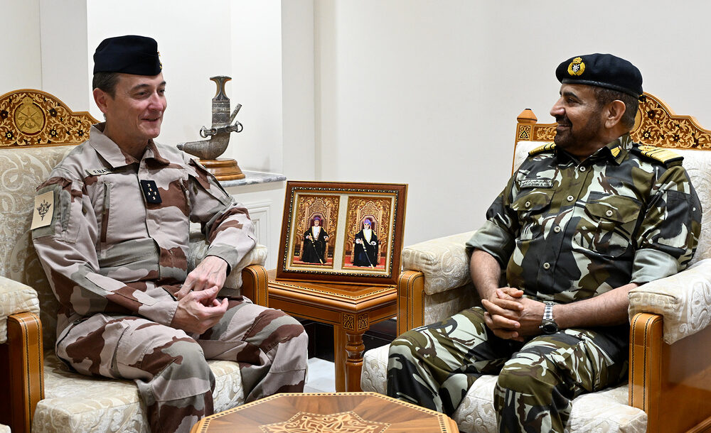 MUSCAT – Upon arrival at the headquarters of the Sultan’s Armed Forces, the French Chief of Staff was accorded an official reception ceremony. The guard of honour performed a military salute, followed by a salute from the military band, after which the guest reviewed the guard of honour.
