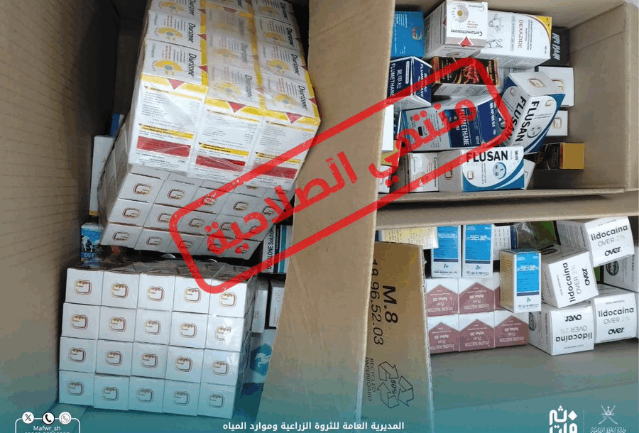 MUSCAT – The operation was carried out by the Control Department of the Ministry of Agriculture, Fisheries and Water Resources, in coordination with the Agriculture and Water Resources Department in Bidiyah, as part of ongoing efforts to ensure the safety and quality of veterinary services.
