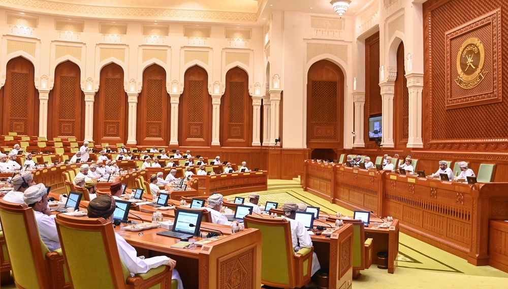 The session was chaired by His Excellency Khalid bin Hilal Al Maawali, Chairman of the Shura Council, in the presence of the Secretary-General and members of the Council.